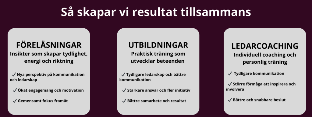För ledare, team och organisationer som vill stärka samarbete, engagemang och resultat genom bättre kommunikation.